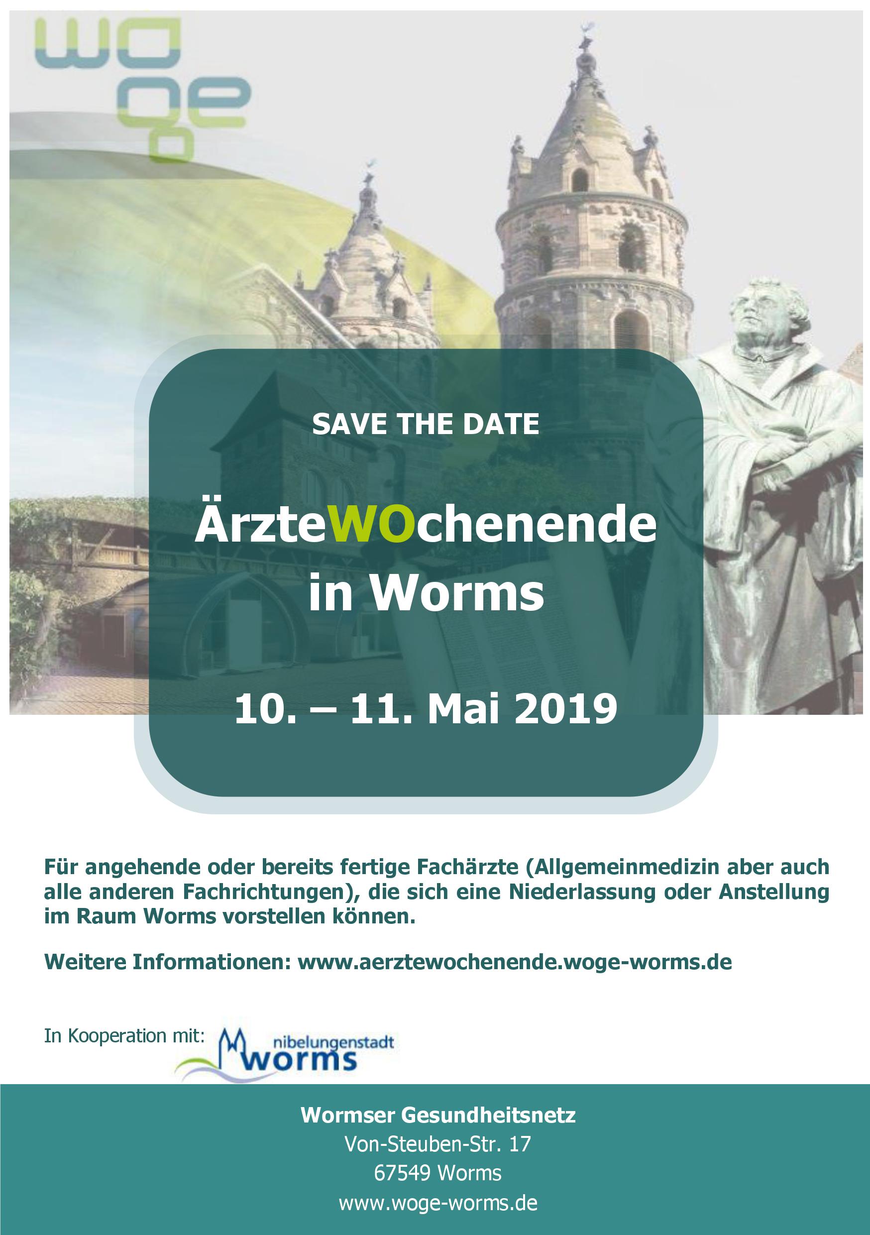 dieses Jahr findet wieder unser WoGe ÄrzteWOchenende in Kooperation mit der Stadt Worms statt. Wir freuen uns auf Ihre Teilnahme!